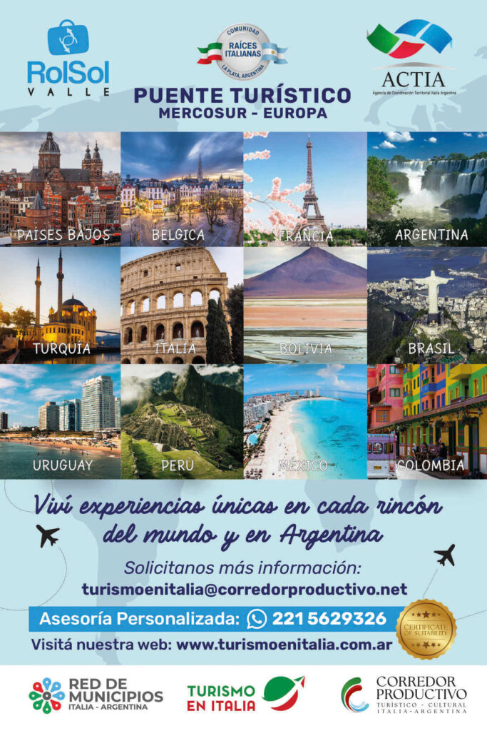 Ahora, junto a Turismo en Italia, formamos parte del Puente Turístico MERCOSUR–Europa, una iniciativa que integra a: